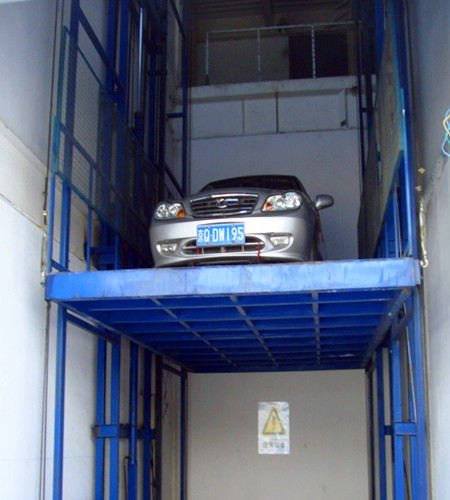 固定式剪叉式升降貨梯是靠剪刀式支撐架的展開與折疊來完成貨物平臺升降的,以錳鋼矩形管作為吊裝機構,將物品從一定高度提升到另一個